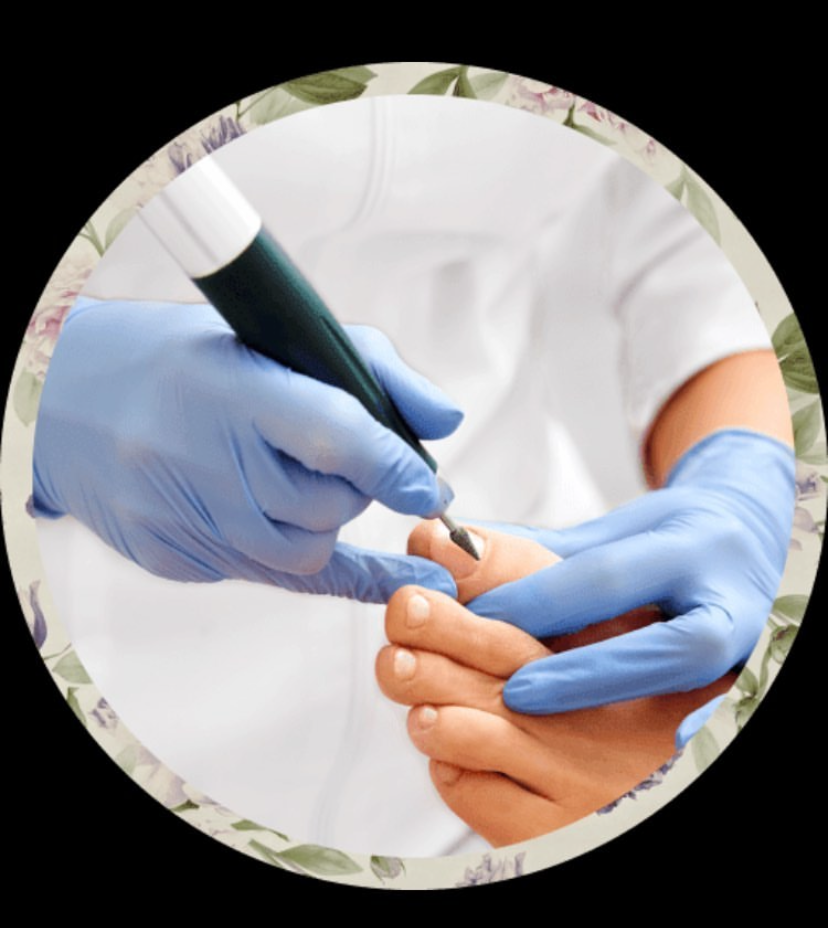 This is a medical pedicure to treat calloused, cracked heels, thickened toenails & remove hard skin from toes, heels & soles of feet. Pressure from ingrown toe nails also relieved. “Your feet will be transformed”.