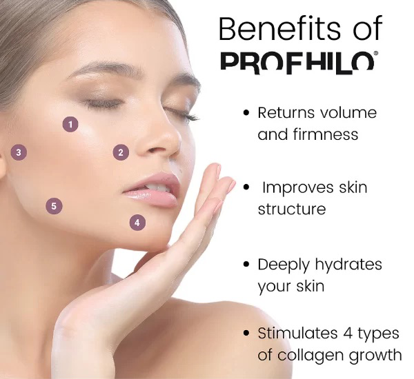 It is not a dermal filler but a completely new technology. Profhilo is injected across 10 points on the face, neck or décolleté and it spreads underneath the skin to improve skin tone, texture, hydration and radiance. It also increases firmness and elasticity for healthier, rejuvenated skin.